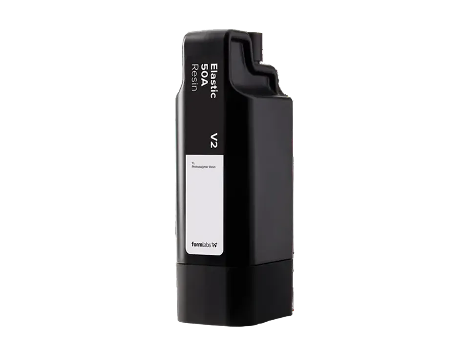 Elastic 50A Resin V2は、ショア硬度50Aの柔らかく半透明のエラストマー材料で、通常より柔らかいゴムやシリコンで製造される部品の試作に最適です。Elastic 50A Resinで造形された部品は、曲げ、伸ばし、圧縮といった様々な加工が可能で、繰り返しの加工にも破れることなく耐え、元の形状に素早く戻ります。